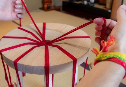 世界各地で3000年前から使われている技法「スプラング編み」でハンモックチェアを作っていきます。